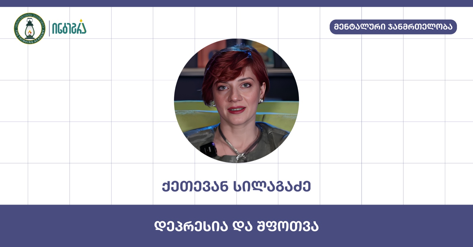 ◼️ აზროვნების აკადემიაში ლექციათა ციკლის, "მენტალური ჯანმრთელობის" ფარგლებში გაიმართება სალონური საუბრები ქეთი სილაგაძესთან თემაზე: "დეპრესია და შფოთვა".