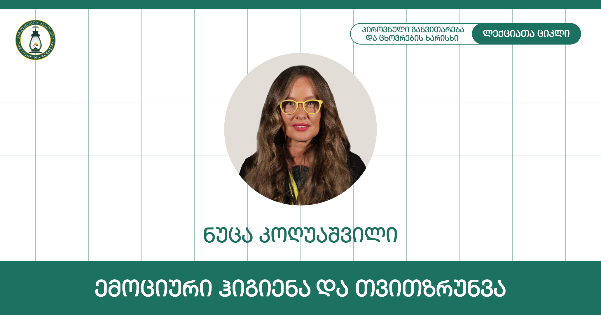 ◼️ აზროვნების აკადემიაში ლექციათა ციკლის, 🔗"პიროვნული განვითარება და ცხოვრების ხარისხი"-ს ფარგლებში გაიმართება სალონური საუბრები თემაზე: "ემოციური ჰიგიენა და თვითზრუნვა". შეხვედრის განმავლობაში ნეირომეცნიერების მკვლევარი და Youtube არხი-🔗 "Spin"-ის შემქმნელი ნუცა კოღუაშვილი ისაუბრებს: