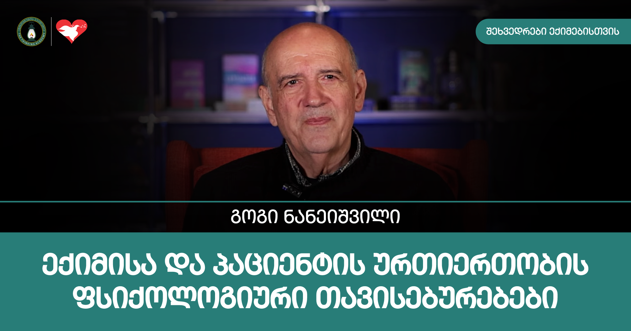 ◼️ აზროვნების აკადემიაში "ლექციათა ციკლი - ექიმებისთვის" ფარგლებში გაიმართება შეხვედრა თემაზე: ექიმისა და პაციენტის ურთიერთობის ფსიქოლოგიური თავისებურებები, რომელსაც ფსიქიატრი, გოგი ნანეიშვილი წარუძღვება .