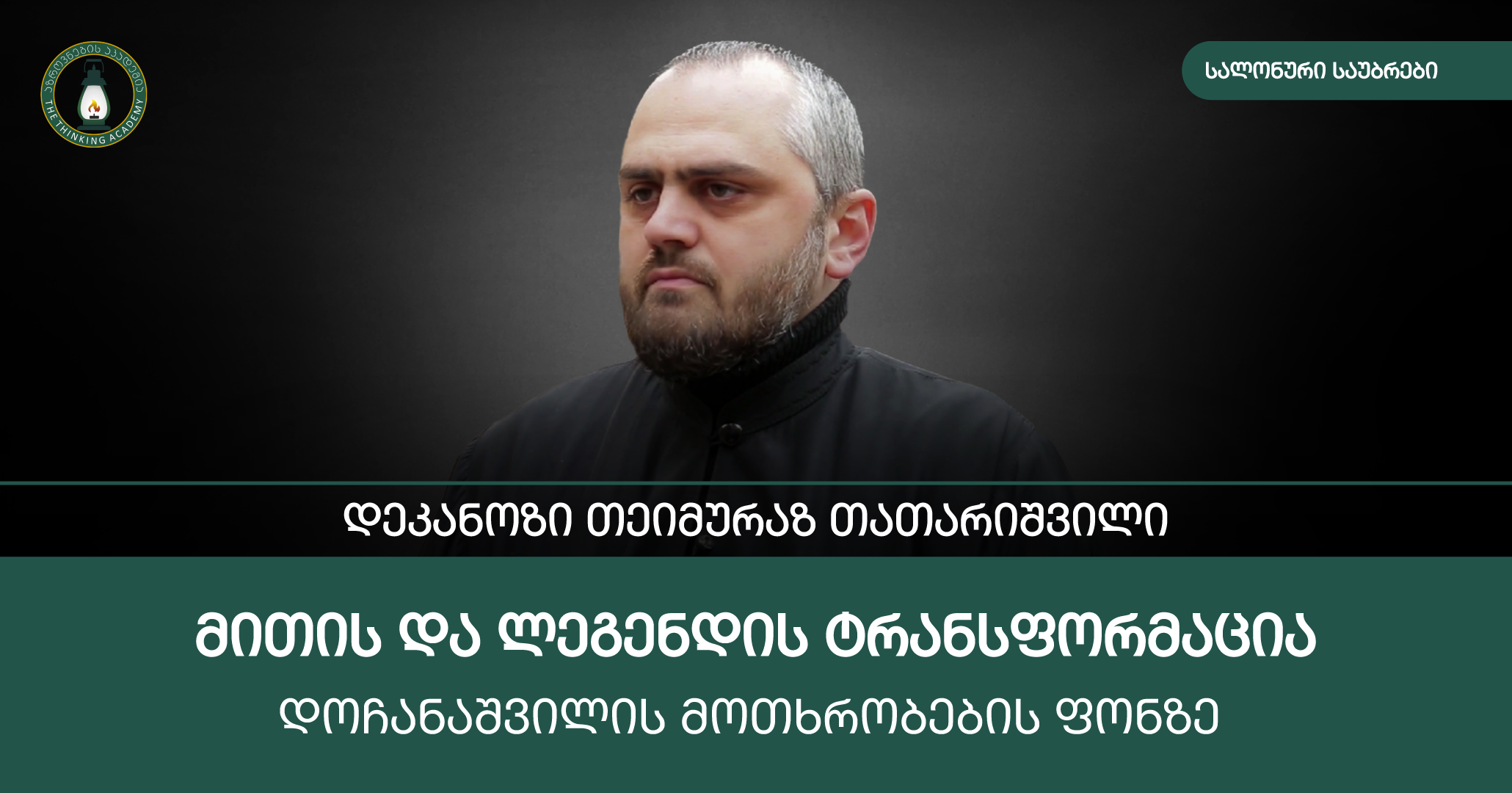 ◼️ აზროვნების აკადემიაში ლექციათა ციკლის, 🔗"გურამ დოჩანაშვილის ცხოვრება და შემოქმედება" ფარგლებში გაიმართება სალონური საუბრები თემაზე: მითისა და ლეგენდის ტრანსფორმაცია დოჩანაშვილის მოთხრობების ფონზე, რომელსაც დეკანოზი თეიმურაზ თათარიშვილი წარუძღვება.