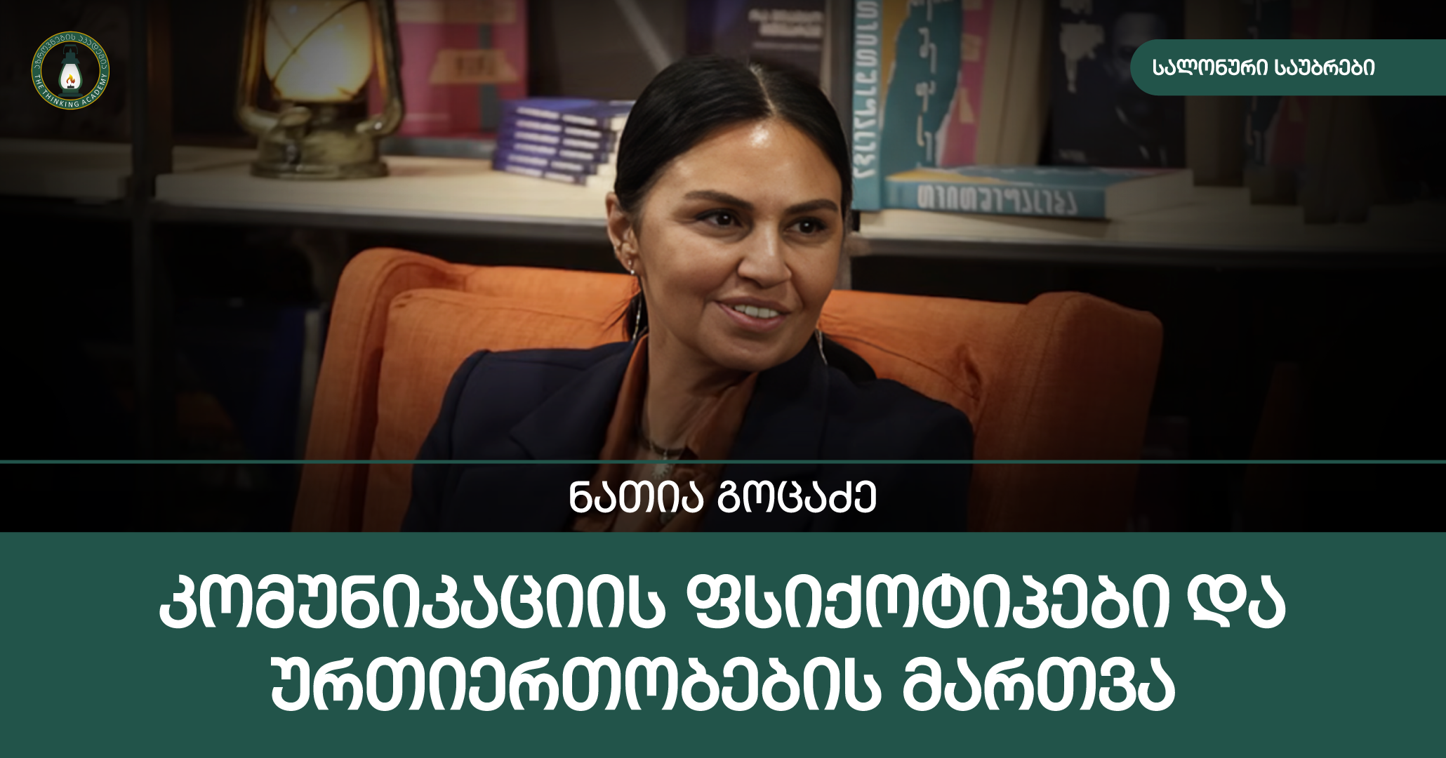 ◼️ აზროვნების აკადემიაში ლექციათა ციკლის, 🔗"ყოველდღიური ცხოვრების ფსიქოლოგია"-ს ფარგლებში გაიმართება სალონური საუბრები თემაზე: "კომუნიკაციის ფსიქოტიპები და ურთიერთობების მართვა",  რომელსაც ,,ალტერბრიჯის" რექტორი, კომუნიკაციების ექსპერტი ნათია გოცაძე წარუძღვება.