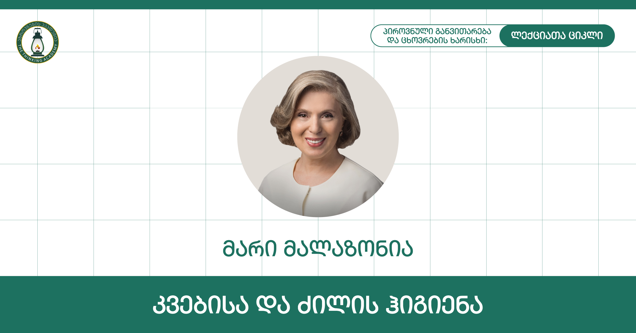◼️ აზროვნების აკადემიაში ლექციათა ციკლის, 🔗"პიროვნული განვითარება და ცხოვრების ხარისხი"-ს ფარგლებში გაიმართება სალონური საუბრები თემაზე: "კვებისა და ძილის ჰიგიენა". შეხვედრის განმავლობაში ექიმი-ნუტრიციოლოგი, პროფესორი მარი მალაზონია ისაუბრებს: