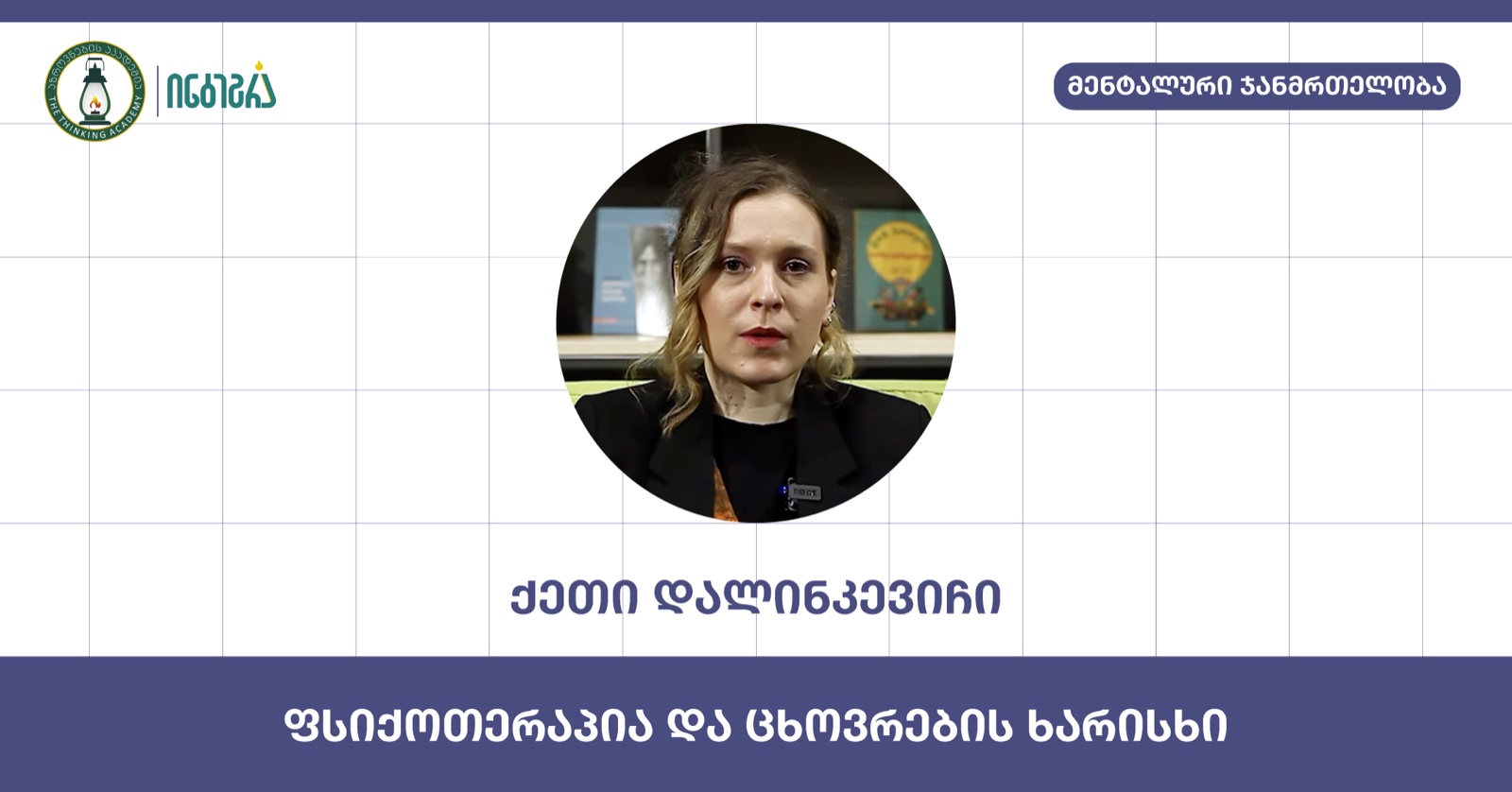 ◼️ აზროვნების აკადემიაში ლექციათა ციკლის, "მენტალური ჯანმრთელობის" ფარგლებში გაიმართება სალონური საუბრები ქეთი დალინკევიჩთან თემაზე: "ფსიქოთერაპია და ცხოვრების ხარისხი".