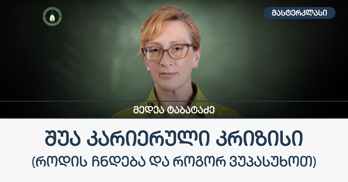 მასტერკლასი პრაქტიკულ ჭრილში აჩვენებს, როგორ შეიძლება ამ კრიზისზე რეაგირება არა როგორც ჩავარდნაზე, არამედ როგორც გარდამტეხ ეტაპზე - გადაფასების, მიმართულების შეცვლის ან პროფესიული რესტარტის შესაძლებლობაზე.