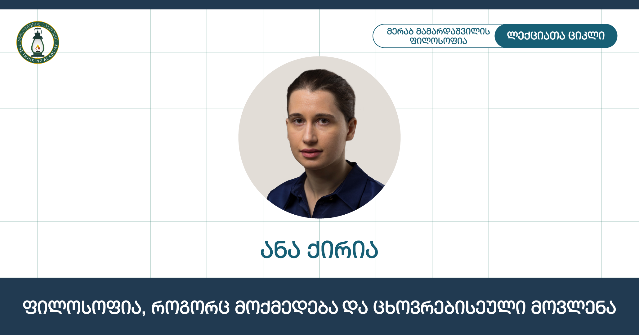◼️ აზროვნების აკადემიაში მერაბ მამარდაშვილის ლექციათა ციკლის ფარგლებში ანა ქირია წაიკითხავს ლექციას თემაზე: ფილოსოფია, როგორც მოქმედება და ცხოვრებისეული მოვლენა