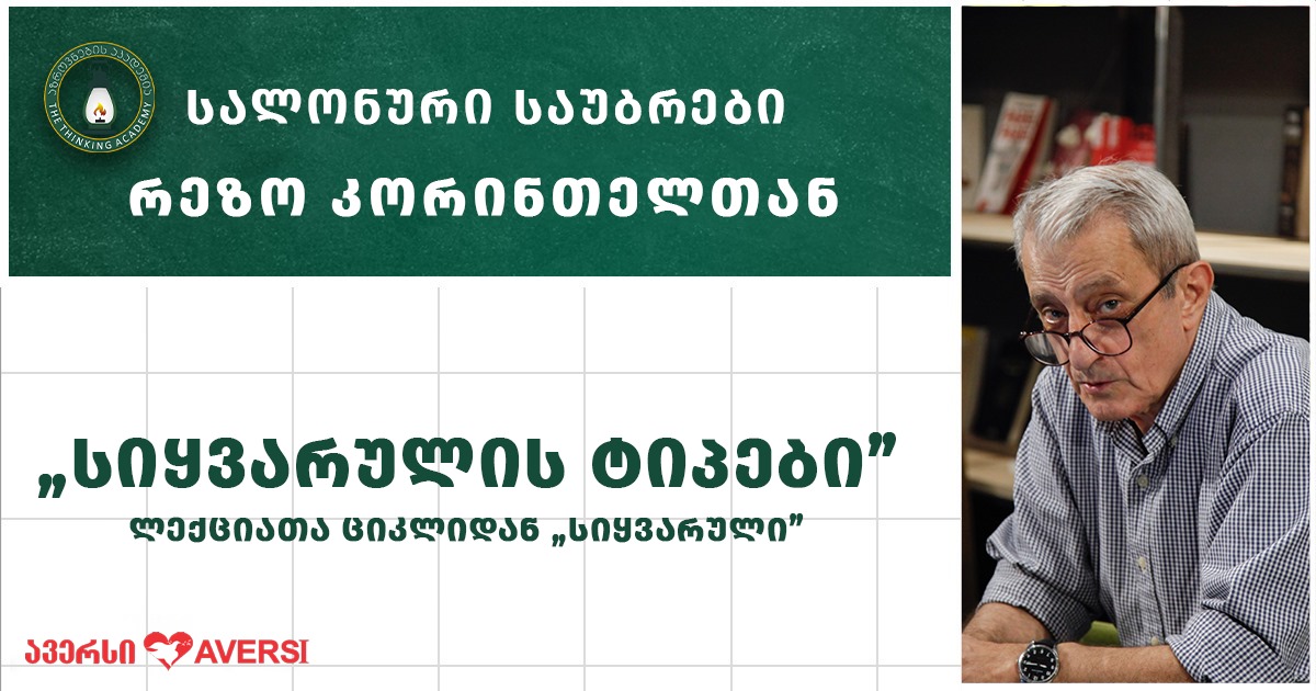 აზროვნების აკადემიაში ლექციათა ციკლის „სიყვარული" ფარგლებში გაიმართება შეხვედრა რეზო კორინთელთან.