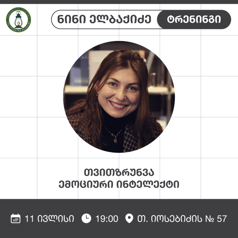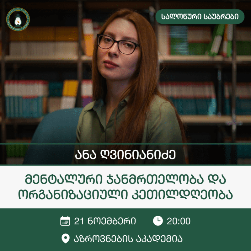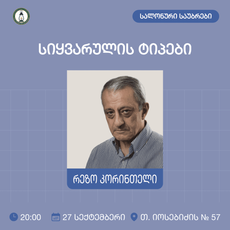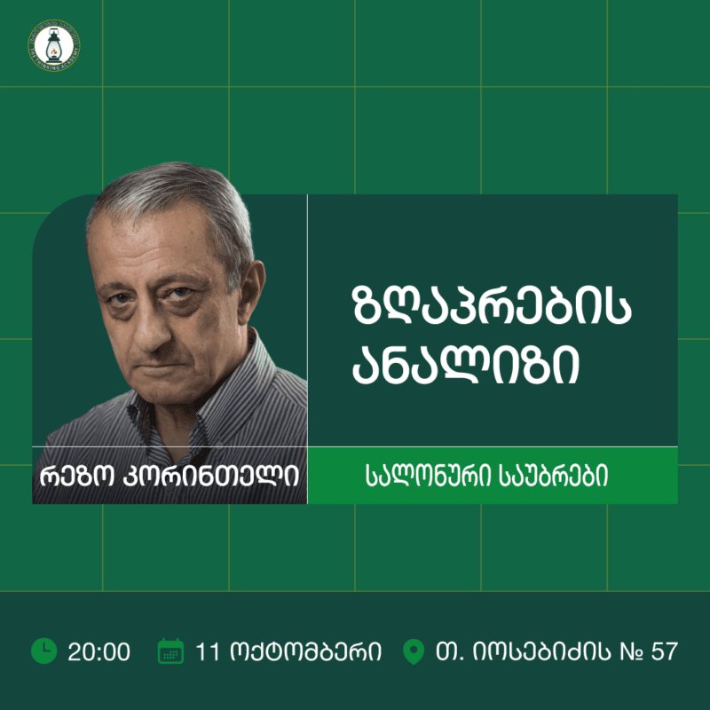 სწრაფი გადახედვა რეგისტრაცია ნაფიქრალი – სიტყვის ძალა 150 ₾ მიმდინარე სალონური საუბრები სწრაფი გადახედვა რეგისტრაცია ესპანურ-ქართული ამბები- დათო ტურაშვილი 30 ₾ სწრაფი გადახედვა რეგისტრაცია რუმი და სუფიზმის კონტურები – ანდრო დგებუაძე 50 ₾ სწრაფი გადახედვა რეგისტრაცია უილიამ ფოლკნერი- აგვისტოს ნათელი -ზაალ ჩხეიძე 50 ₾ სწრაფი გადახედვა რეგისტრაცია ტერენტი გრანელი – ცხოვრება და შემოქმედება, ფსიქოანალიტიკური თვლასაზრისები – გიორგი ჭანტურია 30 ₾ სწრაფი გადახედვა რეგისტრაცია მართვა და კომუნიკაცია – ზურა მხეიძე 80 ₾ ━━━━━━━━━━━━━━━━━━━━━━━━━━━━━━━━━━━━━━━━━━━━━━━━ჩატარებული სალონური საუბრები სწრაფი გადახედვა რეგისტრაცია პიროვნული და პროფესიული გადაწვა-მარინა კაჭარავა 80 ₾ სწრაფი გადახედვა ვრცლად მედიტაცია, როგორც თერაპია – სოსო დოლიძე სწრაფი გადახედვა რეგისტრაცია მენტალური ჯანმრთელობა და ორგანიზაციული კეთილდღეობა- ანა ღვინიანიძე 50 ₾ სწრაფი გადახედვა რეგისტრაცია ჯემალ ქარჩხაძე-ზებულონი- ანა ქირია 30 ₾ სწრაფი გადახედვა რეგისტრაცია იაპონური კულტურა და ლიტერატურა – რიუნოსკე აკუტაგავა – თათია მემარნიშვილი 30 ₾ სწრაფი გადახედვა ვრცლად სიყვარული და ურთიერთობები – ნათია გოცაძე სწრაფი გადახედვა რეგისტრაცია სინქრონიზმი-რეზო კორინთელი 50 ₾ სწრაფი გადახედვა რეგისტრაცია გავლენები და ურთიერთობები- ზურა მხეიძე 80 ₾ სწრაფი გადახედვა რეგისტრაცია არაცნობიერი-რეზო კორინთელი 50 ₾ სწრაფი გადახედვა რეგისტრაცია ფიქრი გრძნობა და მოქმედება- ანდრო დგებუაძე 80 ₾ სწრაფი გადახედვა რეგისტრაცია მამარდაშვილის ლექციები პრუსტზე – თეიმურაზ თათარაშვილი 30 ₾ სწრაფი გადახედვა რეგისტრაცია ფილოსოფია, როგორც მოქმედება და ცხოვრებისეული მოვლენა – ანა ქირია 30 ₾ სწრაფი გადახედვა რეგისტრაცია ფსიქოლოგიური უსაფრთხოება და სამუშაო გარემო-მაია ხოსიტაშვილი 50 ₾ სწრაფი გადახედვა რეგისტრაცია ქალის არქეტიპები-რეზო კორინთელი 50 ₾ სწრაფი გადახედვა ვრცლად სიტყვის ძალა- ზურა მხეიძე სწრაფი გადახედვა რეგისტრაცია დამოკიდებულებები და ცხოვრების ხარისხი-გიორგი ჭანტურია 50 ₾ სწრაფი გადახედვა რეგისტრაცია განმავითარებელი უკუკავშირი და ინდივიდუალური მიდგომა – ნინო ბუაძე 50 ₾ სწრაფი გადახედვა ვრცლად ემოციები და სხეულის ენა – ზურა მხეიძე სწრაფი გადახედვა ვრცლად გარემო და ადამიანი-ანდრო დგებუაძე სწრაფი გადახედვა ვრცლად ურთიერთობები და ცხოვრების ხარისხი-მარინა კაჭარავა სწრაფი გადახედვა რეგისტრაცია ემოციები, საზღვრები და ურთიერთობა საკუთარ თავთან-ანა ღვინიანიძე 50 ₾ სწრაფ